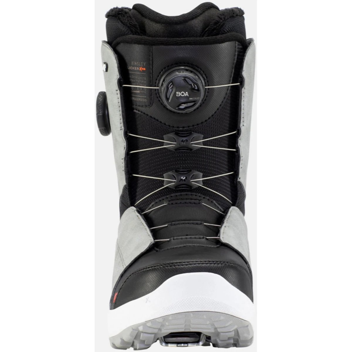 K2 Kinsley Clicker X HB Snowboard Boots – Womens: Step into a whole new experience. The women’s K2 Kinsley Clicker™ X HB boot gives riders the opportunity to dial in the perfect fit and experience the convenience of the K2 Clicker™ X HB binding. With easy-to-use tightening thanks to the dual zone BOA® Fit System, a heat-moldable liner thanks to an Intuition® foam liner, grippy rubber outsole, and secure toe and heel mount points, the Kinsley Clicker™ X HB is the leader in step in performance.