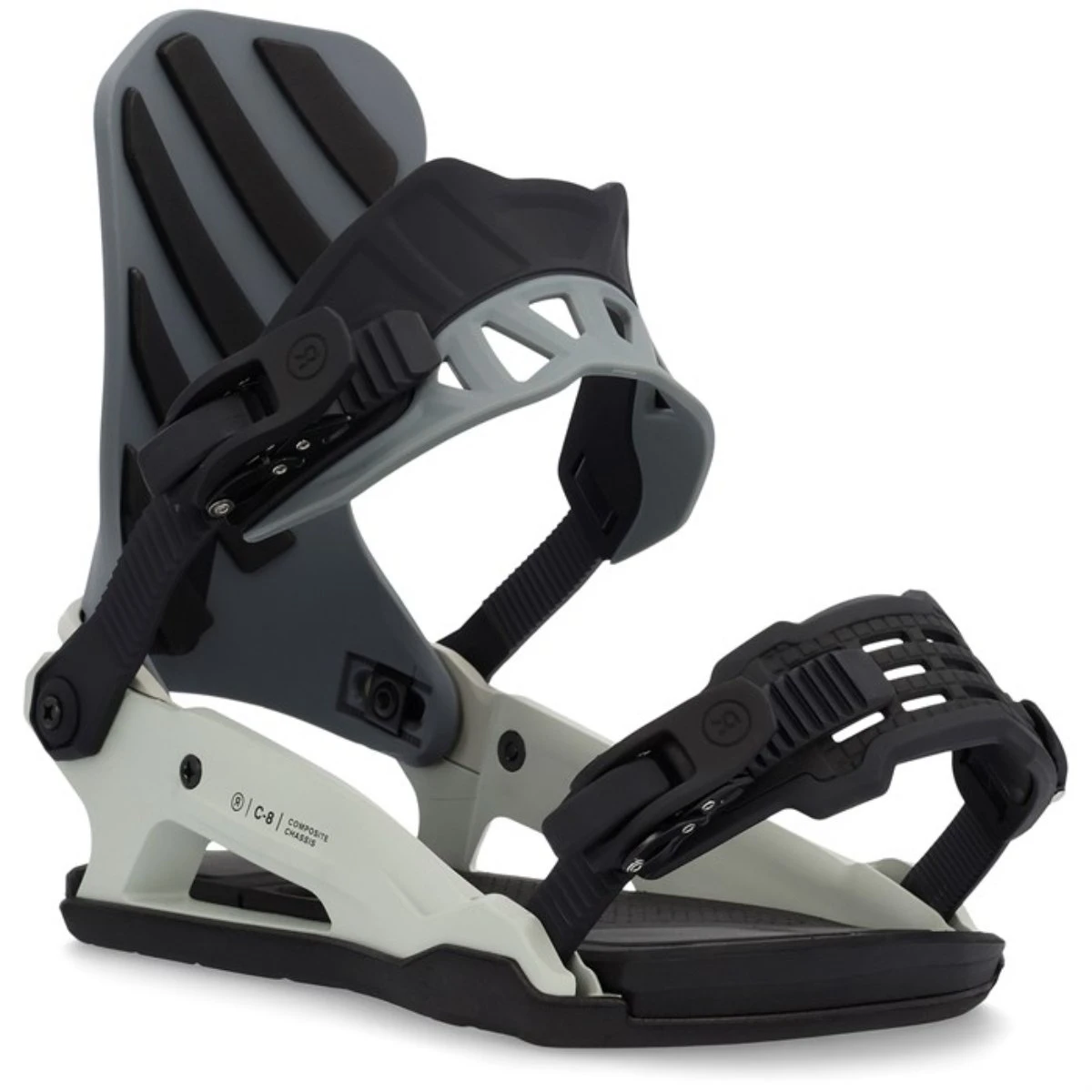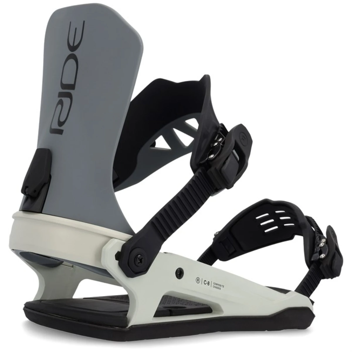 The C-8 is an entirely new direction for Ride. We set out to design the smoothest riding binding in the world and the C-8 did not disappoint. The Urethane in the Slimebackâ„¢ Highback provides a smooth ride and allows for maximum lateral mobility. The C-Series Performance Chassis pairs an aluminum heelcup with a glass filled nylon base tray. The aluminum heelcup provides the feel and durability of aluminum where you need it while the composite tray offers a damp and responsive ride. The Reversible Ankle Strap provides two riding positions. Ride with the stiff part of the strap on the top for a more aggressive feel or swap the straps so the soft part is on top for more flexibility and lateral movement. The canted footbed aligns your joints with a 2.5 degree angle while providing more leverage over the tip and tail of your board. Integrated rubber PODS make for an even smoother ride. The C-8 is designed for high-end performance