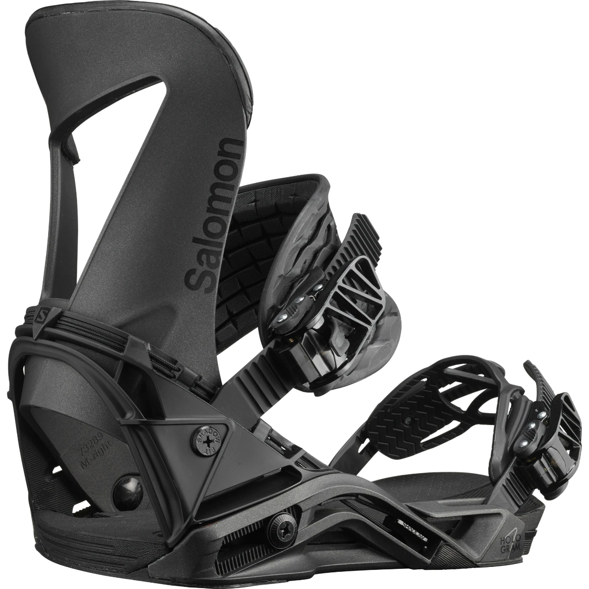 The Salomon Hologram Snowboard Bindings are a light and powerful binding built for freestyle trickery, but they can also be used to slash tight tree lines and ride bumps. They have an enhanced heel hold, which you’ll notice on hard toeside carves, thanks to the Shadowfit heel cup.